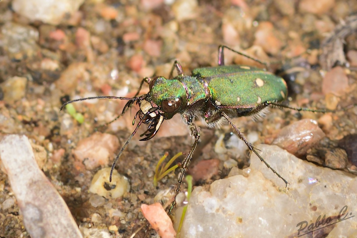 Escarabajo Cicindela campestre (Cicindela campestris). Son depredadores, se alimenta de insectos
