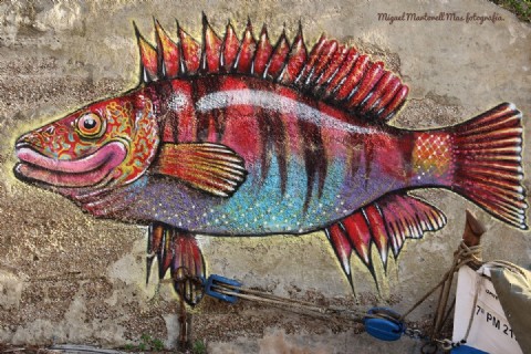 Pintura mural de un pescado o pez. Puerto de Valldemosa, Mallorca