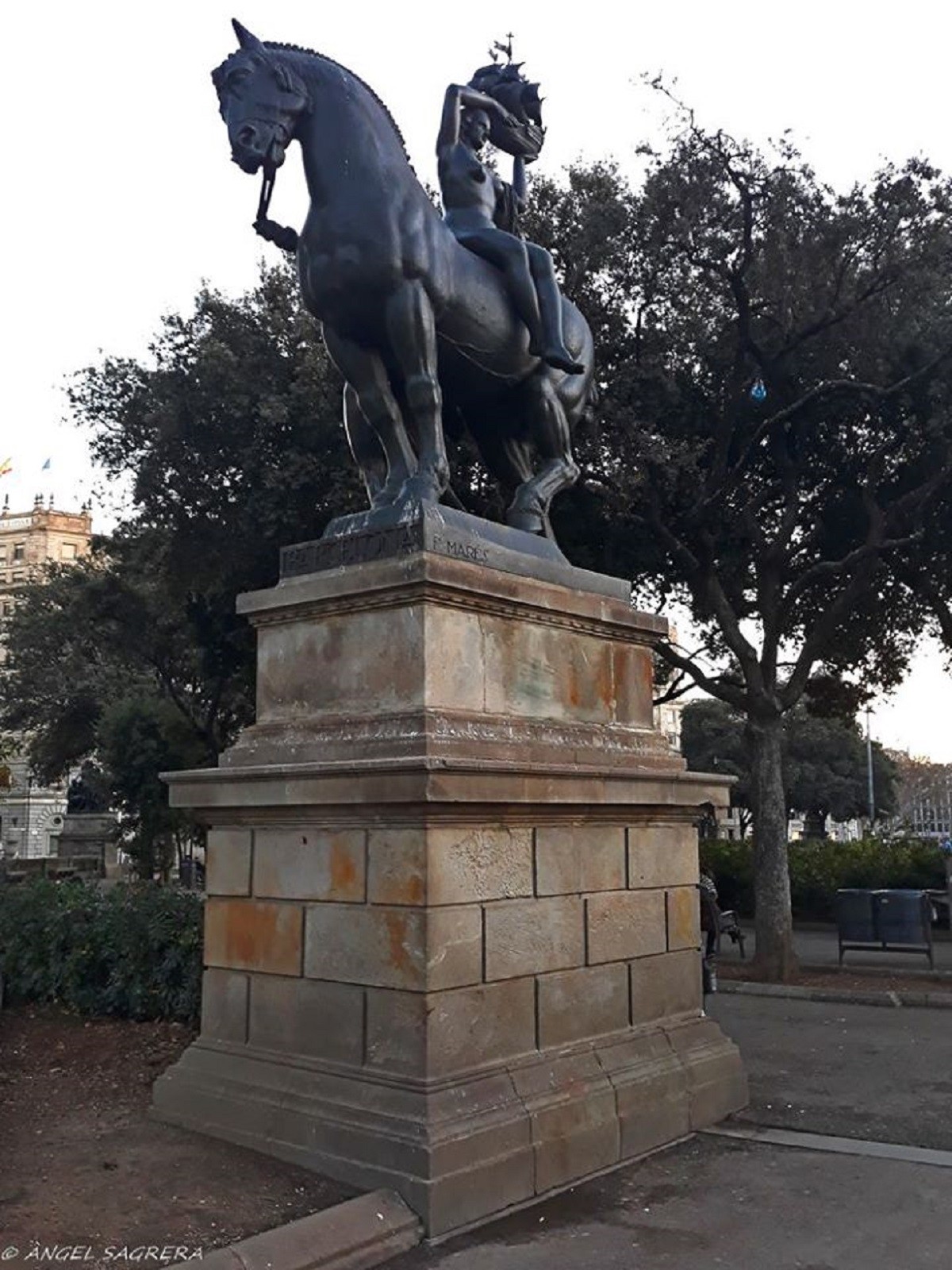 Peanya amb estàtua de Marés. Plaça de Catalunya (Barcelona)