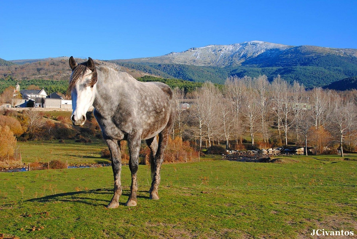 Caballos con la Sierra de Guadarrama de fondo, Segovia