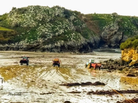 Ocle. Recogiendo ocle, playa de Poo en Llanes